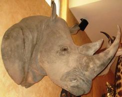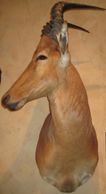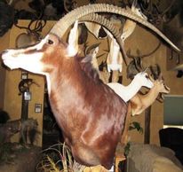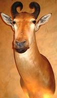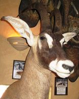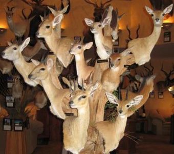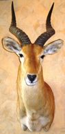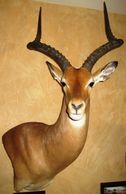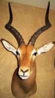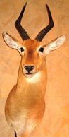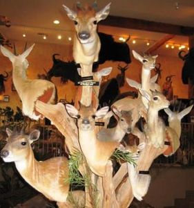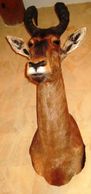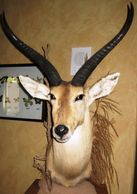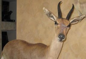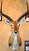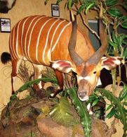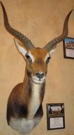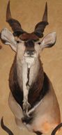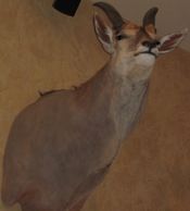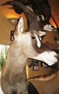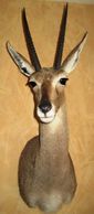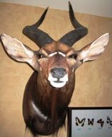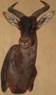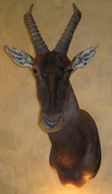 Fun Fact: Bates Pygmy Antelope are the smallest huntable antelope in Africa - This one weighs 3.5 pounds. The Lord Derby Eland (pictured below the Bates Pygmy) is the largest huntable antelope in the world - he can weigh up to 1,500 pounds.