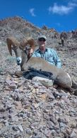 It took an 8 1/2 hour trek and 3,500 foot climb to get him. Shot in 40 mph wind and sleet and rain on top of the mountain. I lost 10% of my bodyweight on this hunt.