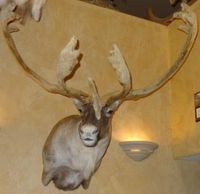 Saw 10,000 Caribou in five days of hunting. There were hundreds of these old guys that did not have enough calcium to hold up their antlers - they just flopped when they walked.